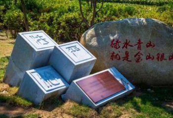 聊城二干渠城市生態(tài)公園的石材景觀雕塑,包含題字石碑與浮雕墻,展現(xiàn)出豐富的文化理念。