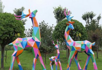 不銹鋼彩繪抽象梅花鹿雕塑——抽象美學(xué)與幾何精致相結(jié)合