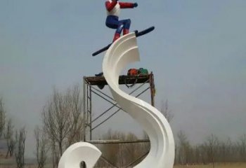 花園廣場擺放大型創(chuàng)意不銹鋼滑雪景觀雕塑