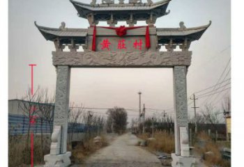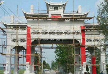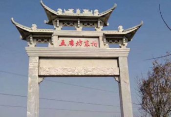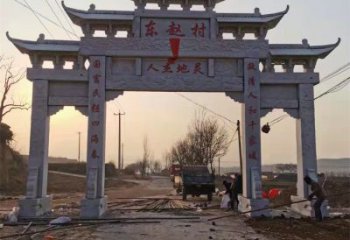 歷史名人故里村前擺放大石浮雕樓牌坊