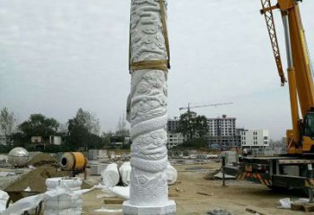 大理石石雕盤龍龍柱雕塑