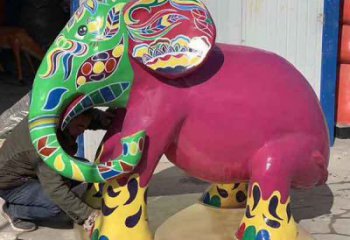 戶外商場(chǎng)門口玻璃鋼彩繪戶外園林動(dòng)物景觀大象