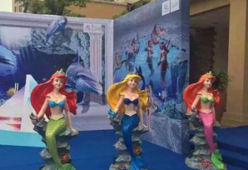 愛(ài)的浪漫美人魚(yú)雕像在廣場(chǎng)上的邂逅