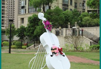 玻璃鋼雕刻大廈室內(nèi)裝飾白色大提琴裝飾品