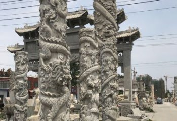 石雕龍柱我們都知道和聽(tīng)說(shuō)過(guò)的,庭院精美大型龍柱雕塑橫貫一塊美麗的云板,好似行云插入云際。素有吉祥、華貴、誠(chéng)信等意,是單位公司、家居、辦公裝飾、園林觀賞、饋贈(zèng)等之佳品。龍柱雕塑在中華民族有著非常悠久歷史,相傳既有道路標(biāo)志的作用,又有過(guò)路行人留言的作用,大型石雕龍柱雕塑就出現(xiàn)了。