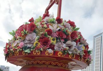 彩繪仿真大花籃雕塑,慶祝國慶節(jié),適合家庭裝飾、公共場所、廣場等場景,是一款以玻璃鋼為原料,以花朵為主題,以雕塑為形式的藝術(shù)產(chǎn)品。