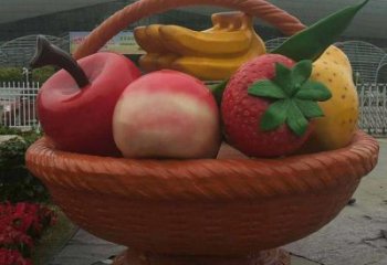 大型彩繪玻璃鋼水果籃雕塑