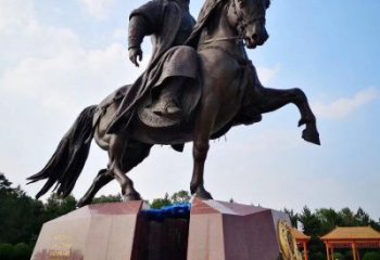 成吉思汗雕塑位于某景區(qū),是景區(qū)的一個(gè)標(biāo)志性建筑。它是一尊立體的銅雕塑,高2.5米,寬2米,重達(dá)1.5噸。整尊雕塑表現(xiàn)出了成吉思汗的氣勢(shì)恢宏,它的頭頂有一頂高達(dá)2米的帽子,頭上戴著一副古老的皇帝面具,臉上帶著一絲英氣,雙眼炯炯有神,雙臂揮舞著一把長(zhǎng)槍,表情極為堅(jiān)定,神態(tài)英勇,彰顯著一股英雄氣概。