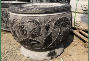 中式風(fēng)格漢白玉鯉魚浮雕水缸