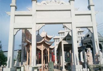 古建筑石材雕刻擺件——漢白玉牌坊村三門道口擺件