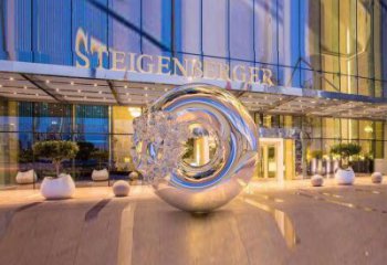 不銹鋼雕塑傘狀圓環(huán),創(chuàng)意裝點商廈鏡面