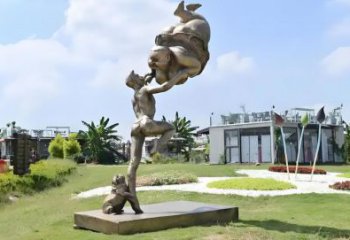 作為景觀雕塑,它旨在為戶外公共空間注入生活氣息與藝術(shù)活力,成為人們休閑場(chǎng)景中的視覺亮點(diǎn),喚起對(duì)童年的美好回憶。采用銅雕塑材質(zhì),銅的質(zhì)感厚重且富有歷史感,能很好地塑造出人物的形態(tài)與細(xì)節(jié),歷經(jīng)歲月也能較好保存,適合長(zhǎng)期放置在戶外環(huán)境中。從趣味雕塑的角度,設(shè)計(jì)聚焦孩童掰手腕這一充滿童真與競(jìng)技感的游戲場(chǎng)景。兩個(gè)孩子在樹樁上全神貫注比拼力氣,面部神情專注又帶點(diǎn)較勁的可愛;一旁背著竹簍的孩子俯身關(guān)注,仿佛也沉浸在這場(chǎng) “較量” 中,姿態(tài)生動(dòng)自然。周圍搭配的陶罐等物件,更增添了生活場(chǎng)景的真實(shí)感,讓整個(gè)雕塑充滿故事性與趣味性,仿佛將一段無憂無慮的童年時(shí)光定格在公共空間里,能瞬間勾起觀者的童年記憶,帶來輕松愉悅的感受,使藝術(shù)與大眾的生活體驗(yàn)緊密相連,成為大家樂于觀賞、互動(dòng)甚至打卡留念的對(duì)象。<br />