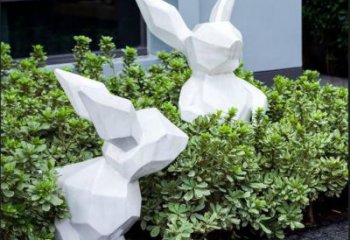 這是一組以雙態(tài)卡通兔子為形象的不銹鋼景觀雕塑,一只呆萌可愛,一只活力歡快,憑借萌趣造型與不銹鋼材質(zhì)的質(zhì)感,成為兼具觀賞性與互動(dòng)性的公共藝術(shù)景觀,為空間增添潮流與溫馨氣息。