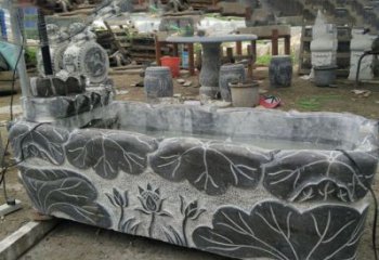 精美大理石浮雕鯉魚荷花舊庭院圓形水缸