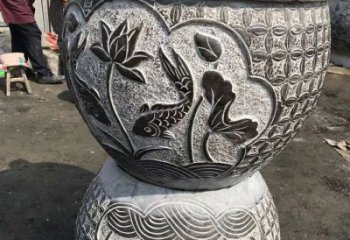 中式古典青石雕刻花盆雕塑