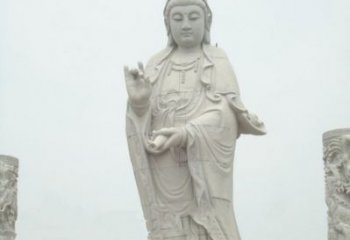 大型觀音雕塑也有將菩薩譯為開士、高士、大士的,并記載了許多菩薩的名字,著名的有彌勒、地藏、文殊、普賢、觀世音、大勢至等。大型觀音雕塑至未能嶄露頭角,最終默默無聞。觀音雕塑、文殊菩薩、普賢菩薩逐漸被改造成中國化的菩薩,并稱為三大士。大型觀音雕塑獨立成軍,又與三大士合稱為四大菩薩。